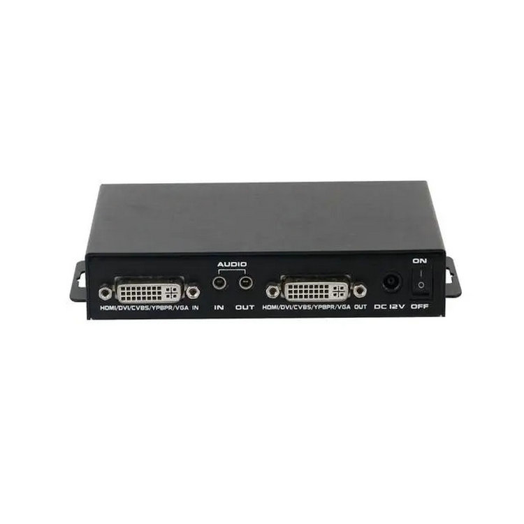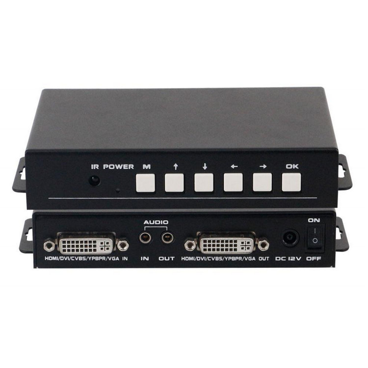 MK-MAV-MAV是一款功能強大的多格式信號轉換器支持任意高清、標清、模擬和數字信號的相互轉換功能,配合對應的轉換頭可支持CVBS/DVI/VGA/Ypbpr/HDMI信號之間的相互轉換。信號輸入輸出均采用DVI-I接口,模擬音頻采用3.5mm音頻接口輸入輸出。此轉換器采用了信號轉換技術,支持去隔行技術,支持3D降噪,支持視音頻的同步切換,支持即插即用功能,不需任何操作,支持輸入輸出的信號檢測,支持各種輸入接口對應格式分辨率,支持圖像的縮放,支持色彩、亮度、對比度、銳度等圖像調節,支持圖像鏡像等多種功能。